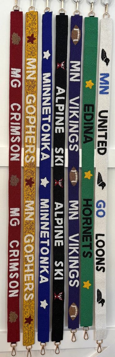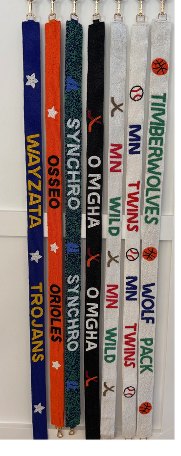 I’ve designed custom bag straps to make your bag pop! Support your team with these awesome straps! Hand beaded and beautiful!